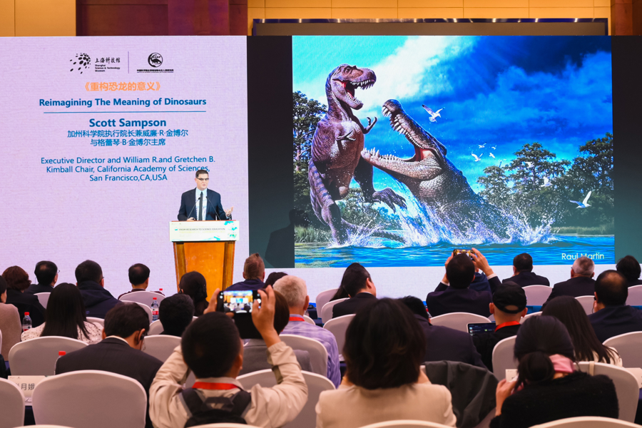 来自美国、英国、日本、泰国、蒙古国、比利时、加拿大、法国、德国、南非等国家的20余位全球顶尖古生物学家、自然历史博物馆馆长及科学教育专家,与全国数十家科研机构、博物馆、企业的百余位嘉宾齐聚沪上,共同探讨恐龙研究前沿动态、先进技术应用以及科学传播与公众教育的创新思想和路径,推动恐龙研究与教育的国际合作,拓展自然博物馆的学术与社会功能。